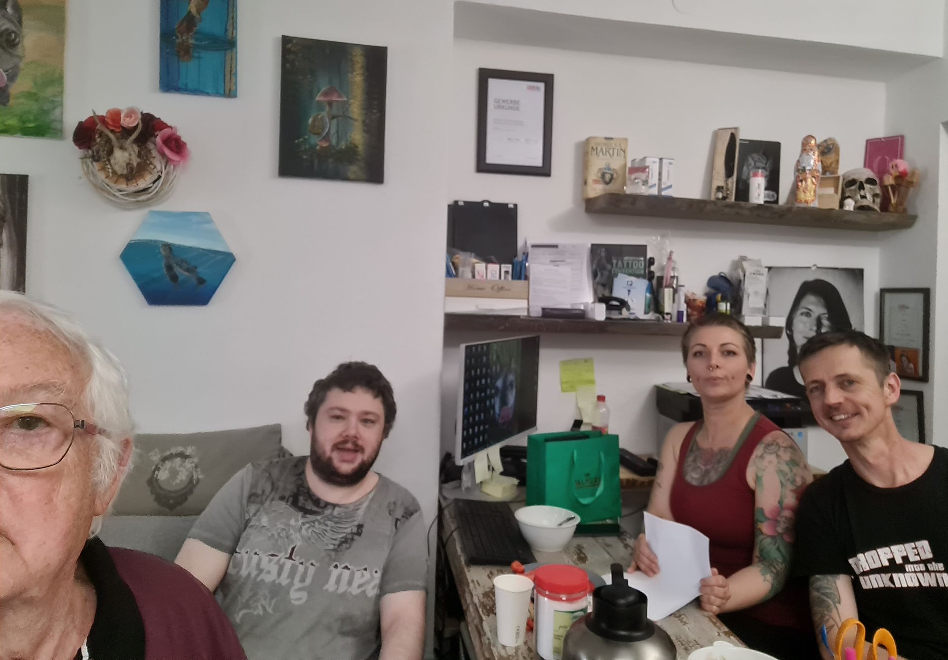 Der Trüffelpapst überraschte mit seinem kurzfristig angemeldeten Besuch. Zsolt Kaplar, ungarischer Tattoo-Spezialist, ließ es sich nicht nehmen, direkt aus Ungarn von seiner Trüffelplantage anzureisen, um den Besucher mit dem Logo der Trüffelschule (Trüffel auf Eichenlaub) zu tätowieren.